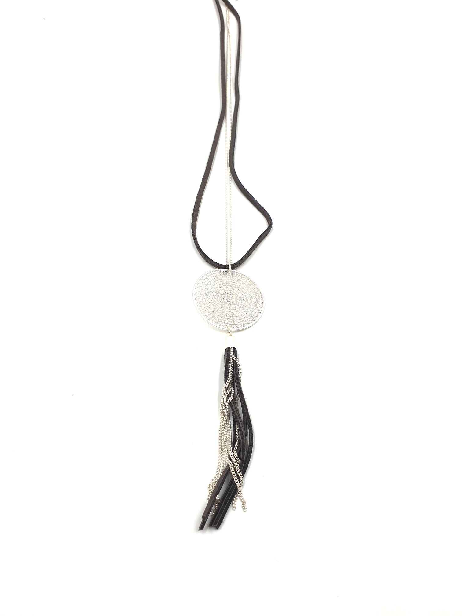String Ohrhänger versilbert matt mit Ledereinsatz schwarz